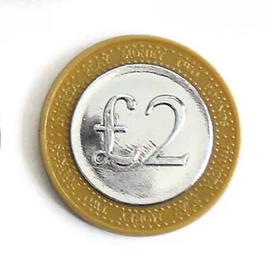 IP063759Plastic UK Sterling 2 pound play coins designed to help children identify different coins and learn the value of money.